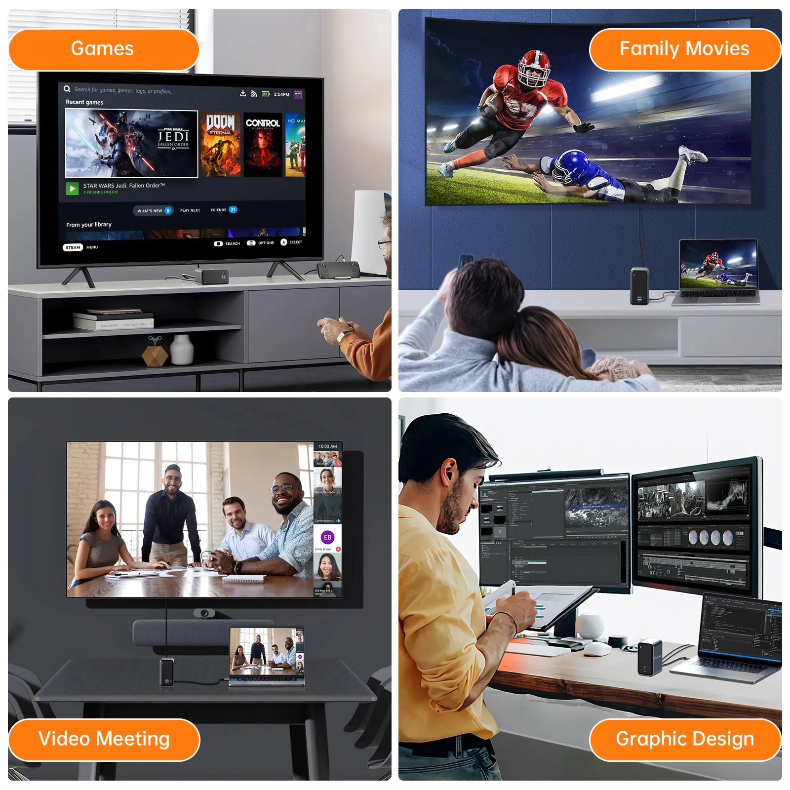 TOBENONE USB C dual monitor docking station can access dual HD external monitors via HDMI ports VGA port or you can get one 4K monitor, which is perfect for those who need to deal with Ultra HD image and video output tasks.