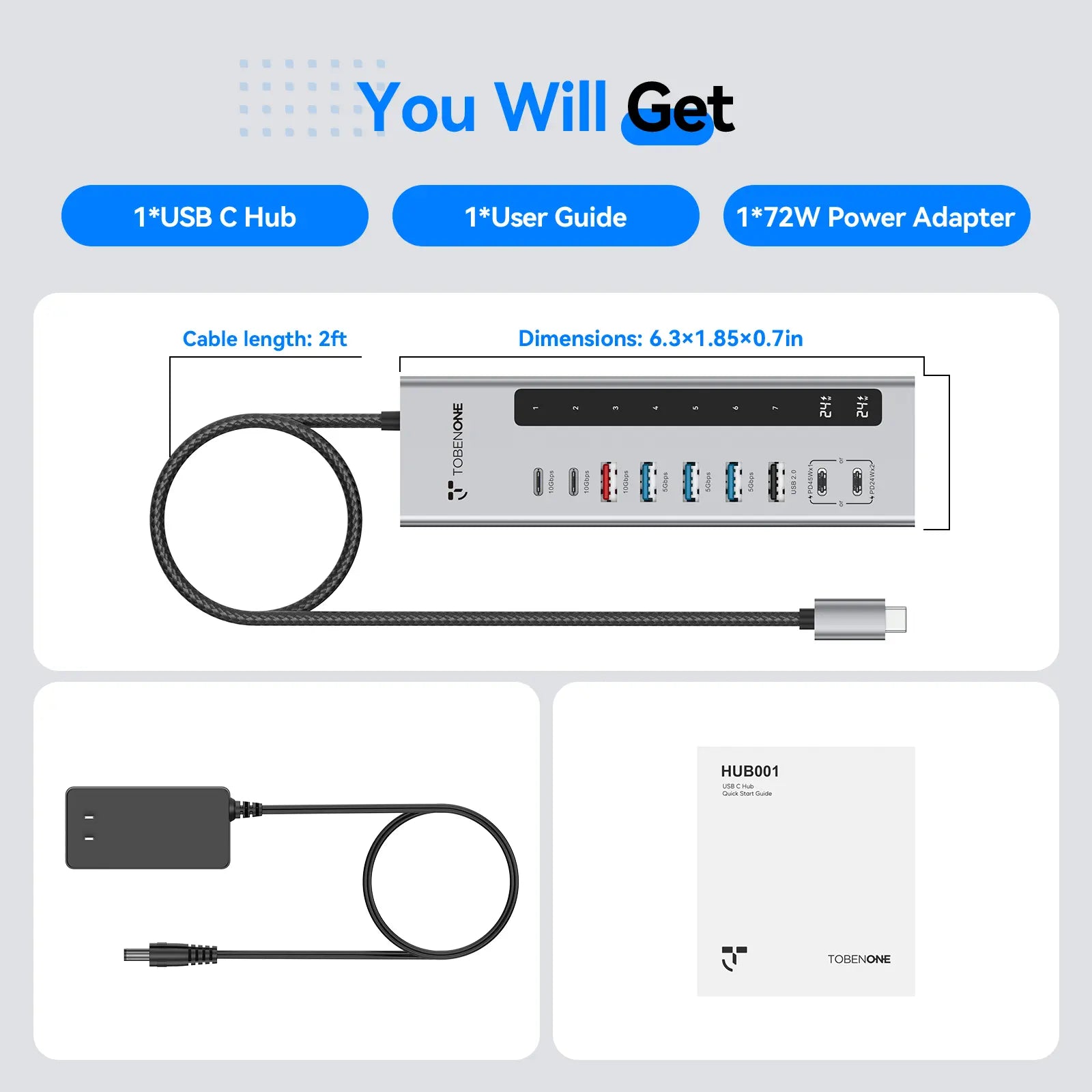 HUB001 TobenONE Powered USB C Hub 11-in-1 10Gbps USB C Splitter