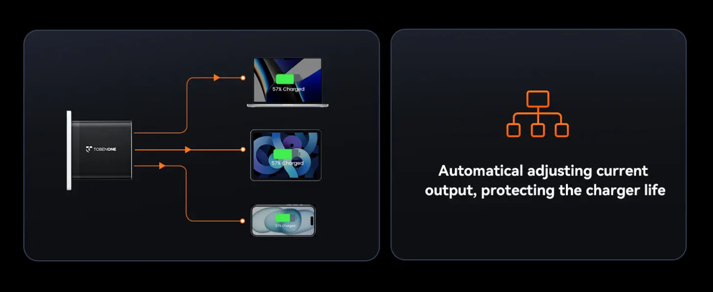 Upgraded GaN III Technology: This USB C charger adopts upgraded Gallium Nitride (GaN) III generation chip technology, with higher energy efficiency, upgraded heat dissipation, and more stable performance. What's more, this USB C fast charger block has built-in intelligent shunt technology that can automatically adjust the output power according to the needs of different devices, ensuring that each device can get the best charging speed and safety.