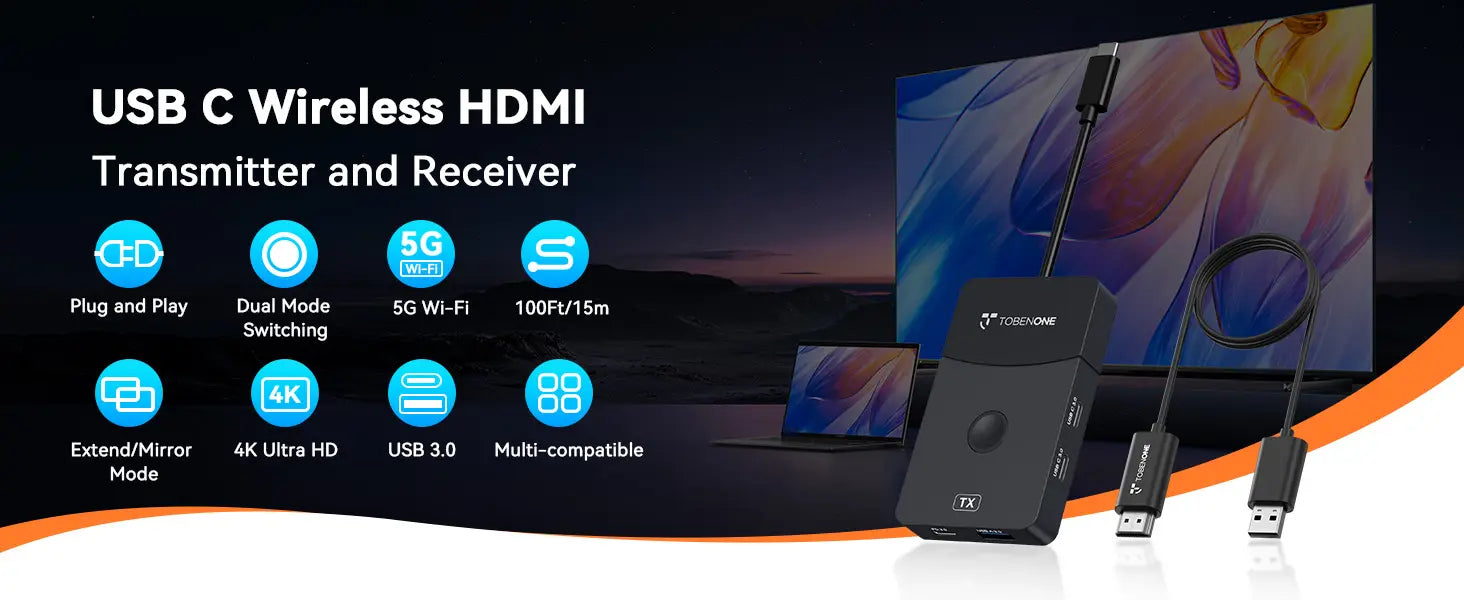 TWP001 USB C Wireless HDMI Transmitter and Receiver, Dual-Band 4K HDMI & USB-C Hub