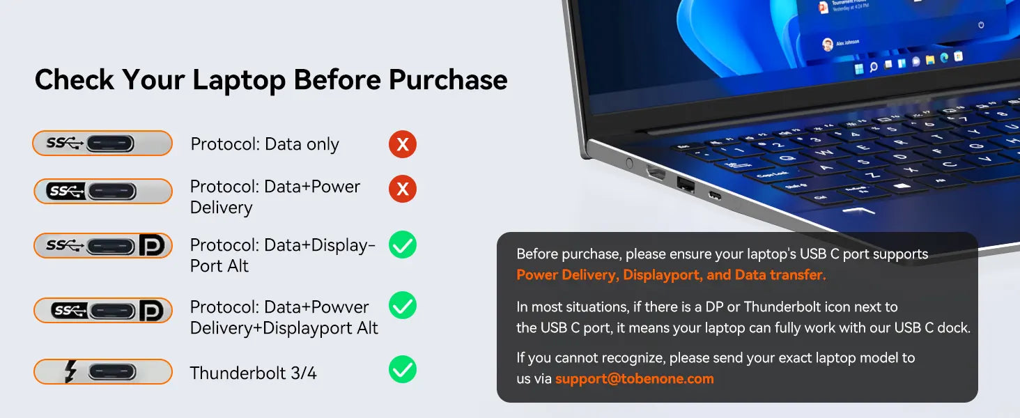 IMPORTANT NOTE: Please confirm your Windows laptop with a full-functional USB-C port( support display, data transfer, charging)
