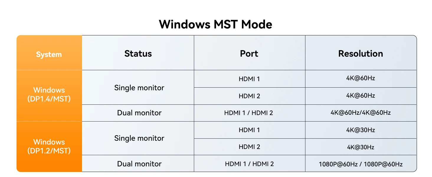 1 x HDMI 1: Resolution up to 4K/60Hz for single display (Plug-and-Play)