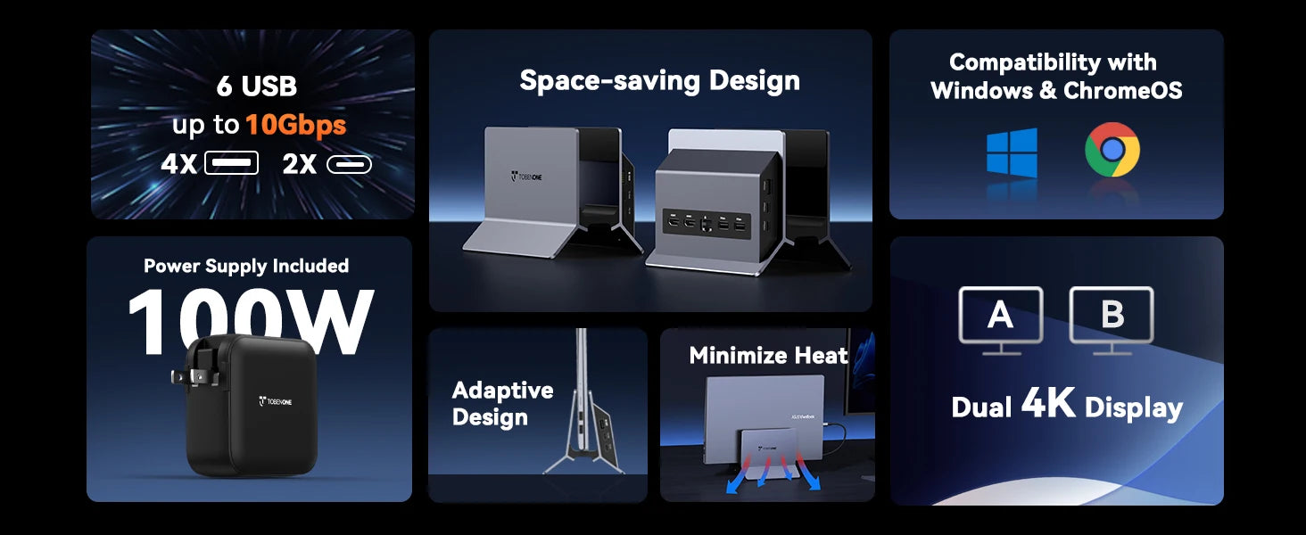 UDS202 TobenONE USB C Laptop Docking Station Dual 4K@60Hz Monitor with 100W Power Supply