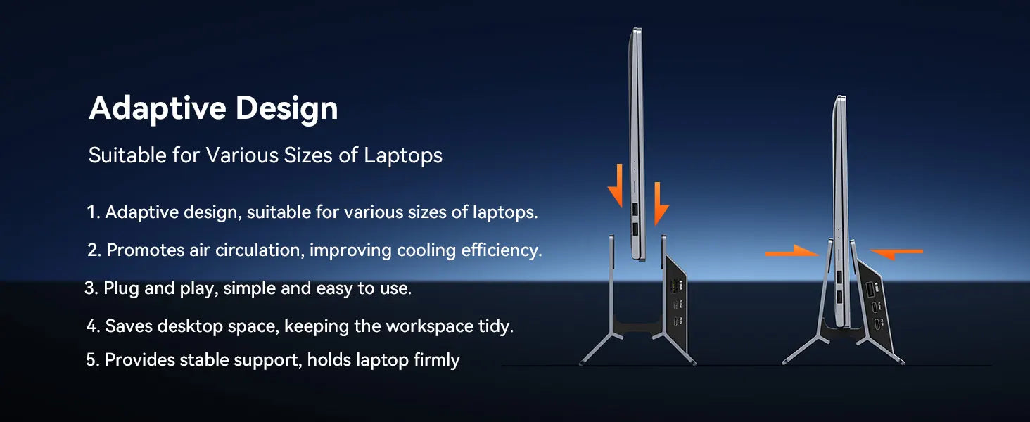 • Space-Saving Design: If you want to turn your laptop into a desktop-like setup and have limited desk space, you should consider our docking station dual hdmi stand. Its sleek design not only keeps your workspace clutter-free but also provides more comfortable viewing for professionals seeking efficient multitasking and enhanced display capabilities. Suitable for daily use in office,home office, school, or any routine tasks