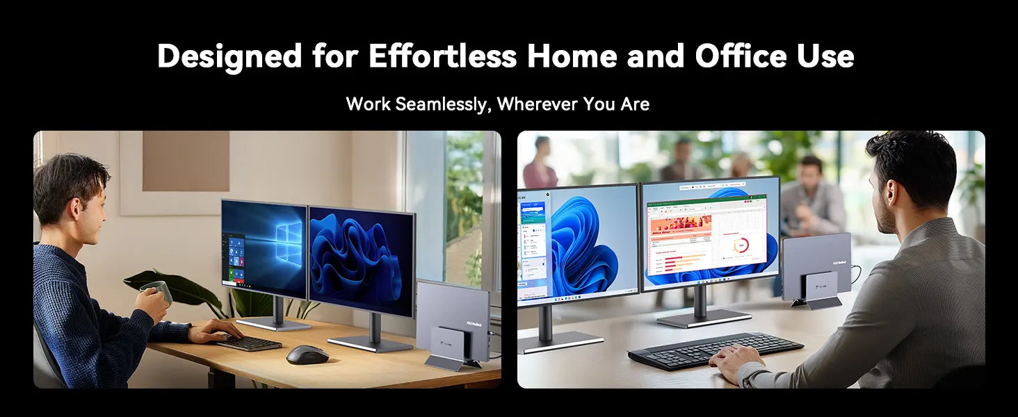 • Dual 4K@60Hz Display for Enhanced Visuals: Enhance your workflow with 2x 4K HDMI ports for ultra-high-definition visuals. Whether you’re multitasking, editing graphics, or enjoying movies, this dual display docking station ensures sharp, vibrant images for an immersive viewing experience that boosts productivity and entertainment alike