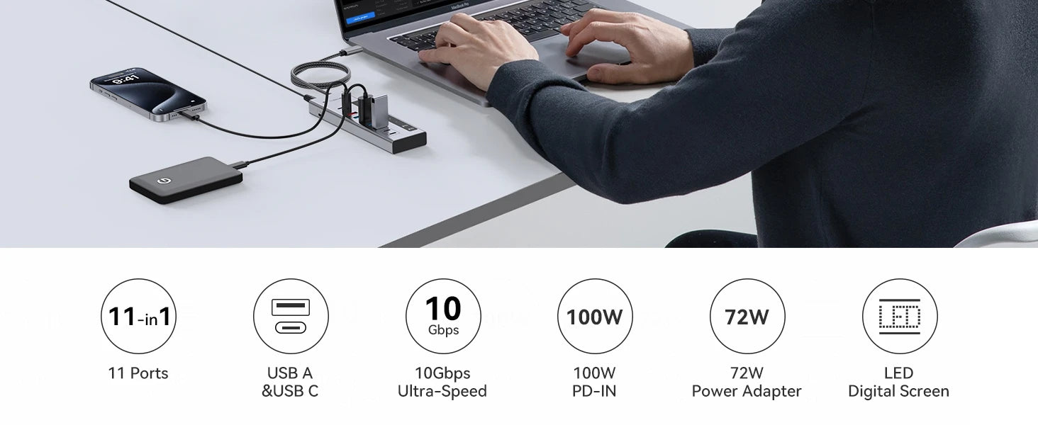 HUB001 TobenONE Powered USB C Hub 11-in-1 10Gbps USB C Splitter