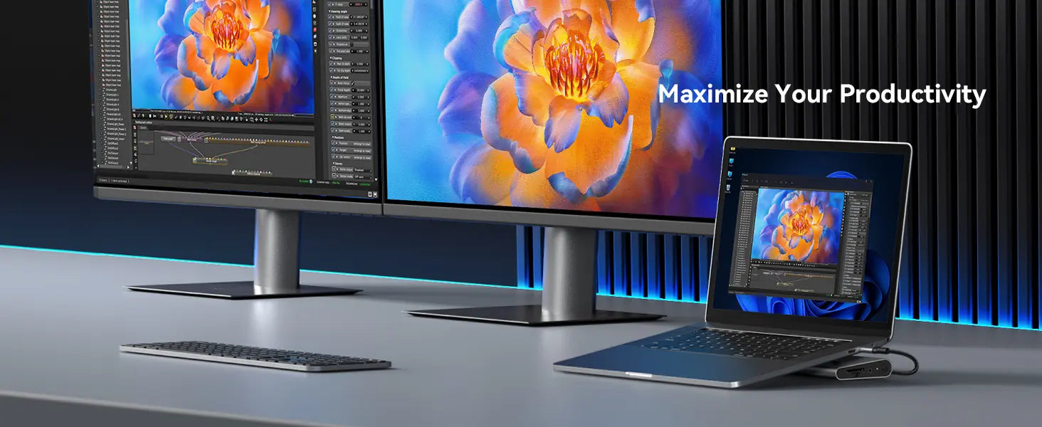 • Stay Charged and Productive with Our 100W Powered Docking Station:This powered usb c docking station with a powerful 100W power supply, ensuring your laptop stays fully charged and ready to handle any task. Whether you're working long hours or engaging in heavy-duty computing, this pc docking station provides the necessary power to keep your device operational without interruption.