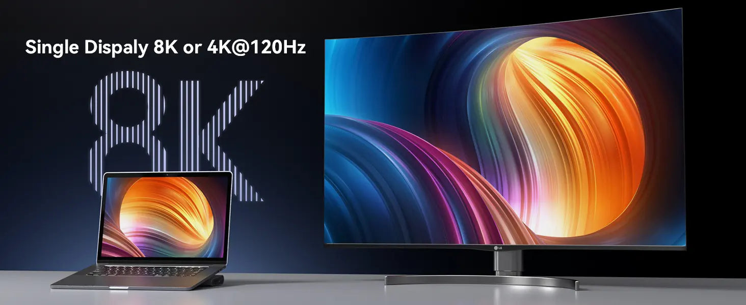 1 x HDMI 2: resolution up to 8K@30Hz for single display(Plug-and-Play)