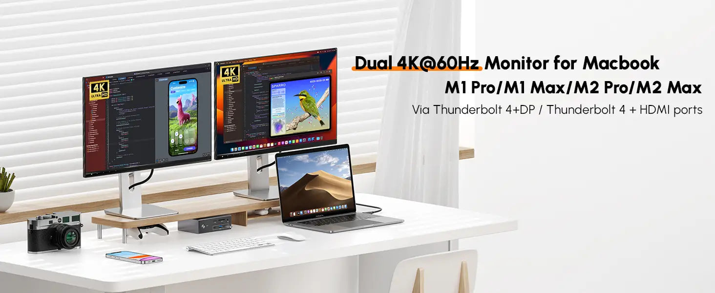 2. MacOS users only can extend 2 monitors via thunderbolt 4+HDMI or thunderbolt 4+DP