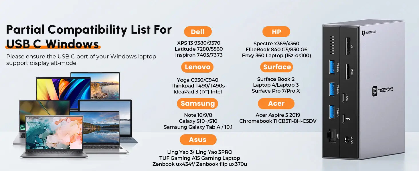 1. Please ensure the USB C port of your Windows laptops upport display alt-mode.