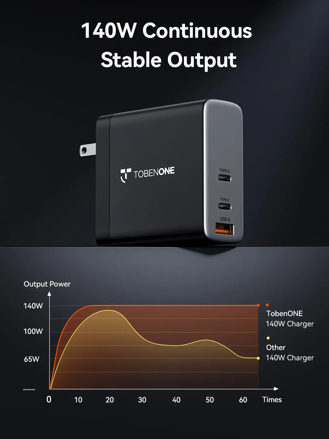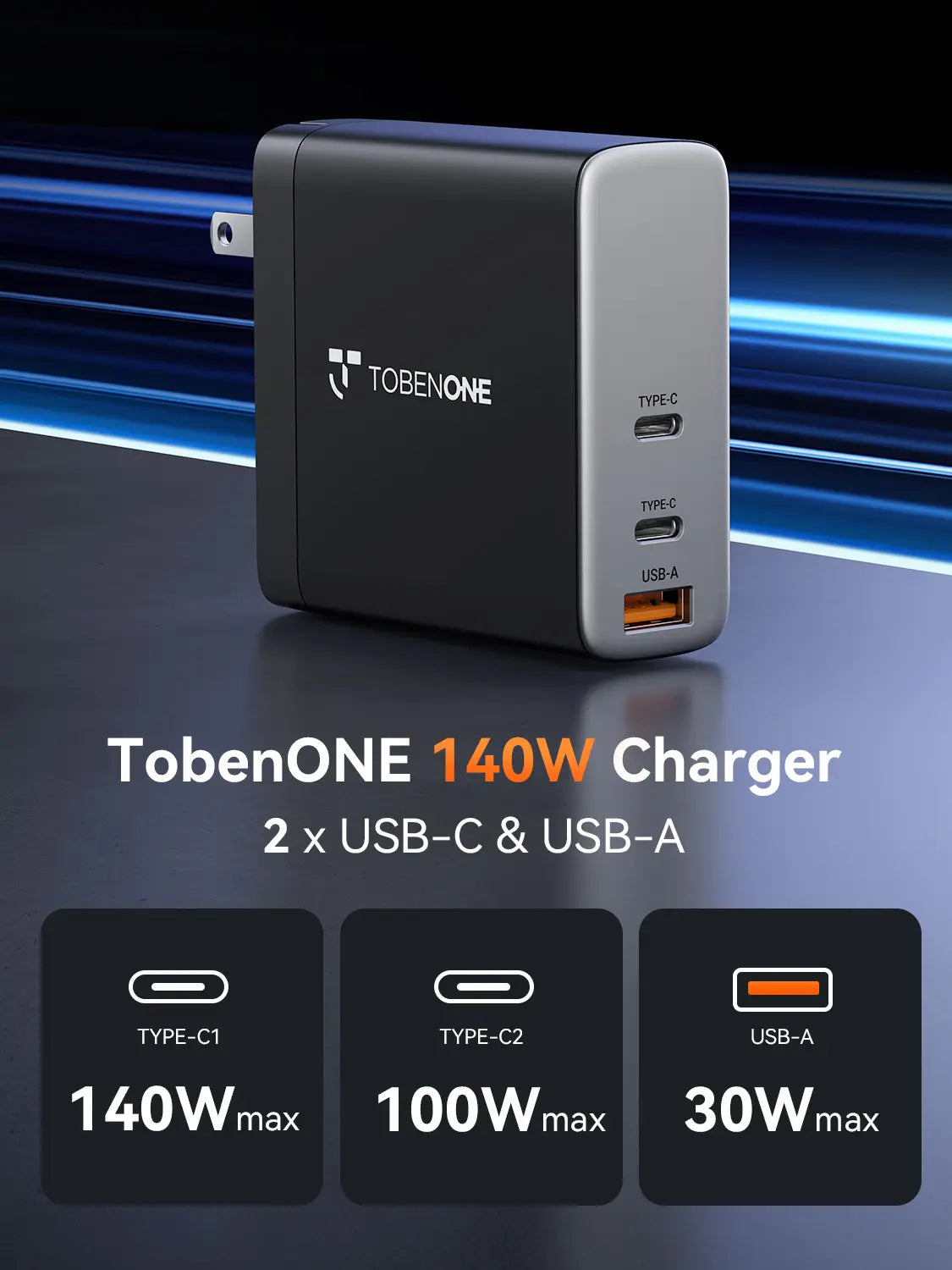 TobenONE 140W USB C Charger with 2 Cables, GaN III Laptop Wall Charger PD3.1 3-Port