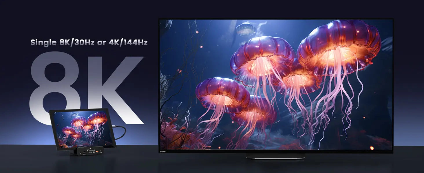 1 x DP Port: Resolution up to 8K@30Hz for single display