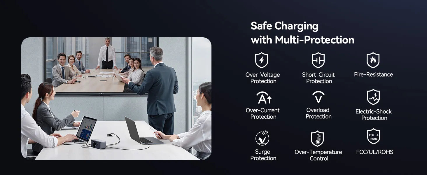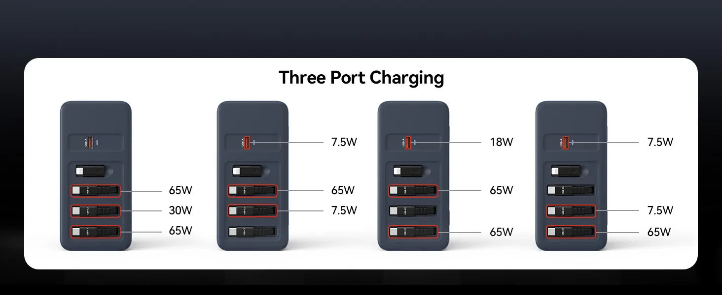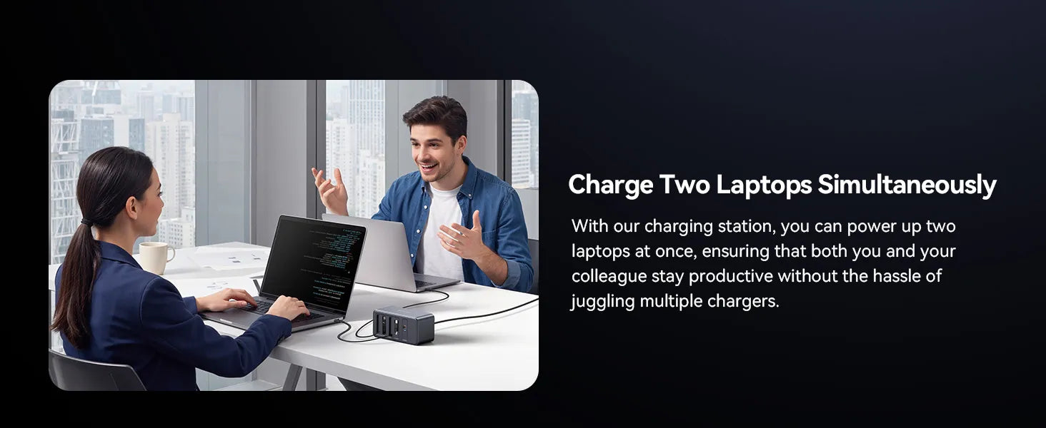 • 165W Ultra Multi-Device Charging Station: All-in-one charging solution, the charging station can simultaneously charge laptops, tablets, smartphones, and other USB C/A devices, or two laptops at the same time (like MacBook Pro/Air). It can charge up to 4 devices simultaneously, enhancing charging efficiency