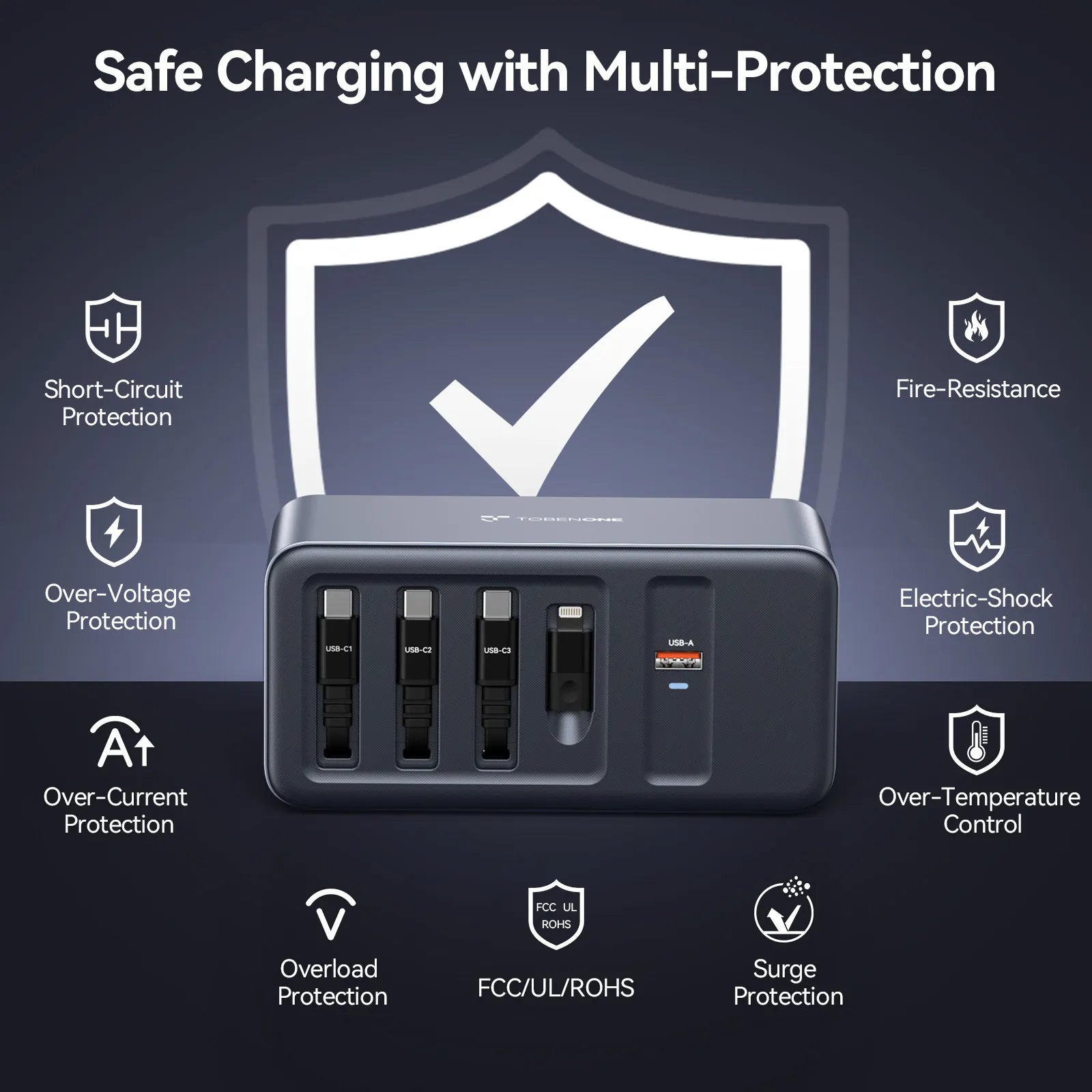 • Multi-Device Charger: This 165W high-speed USB charging station features three retractable cables, USB A port and Lighting adapter to streamline your workspace. Whether you’re a student setting up a college dorm room or a professional upgrading your home office, this compact hub eliminates the need for multiple wall adapters and ensures all your essentials are charged and ready to go