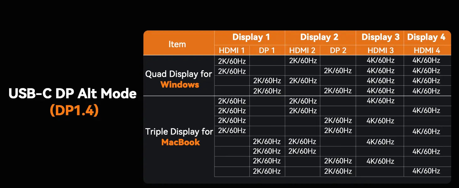 Sorry, due to the limitation of the MacBook's graphics processing capabilities, HDMI 3 and HDMI 4 cannot work simultaneously. So, for macOS, this 4 HDMI docking station only can extend up to 3 displays