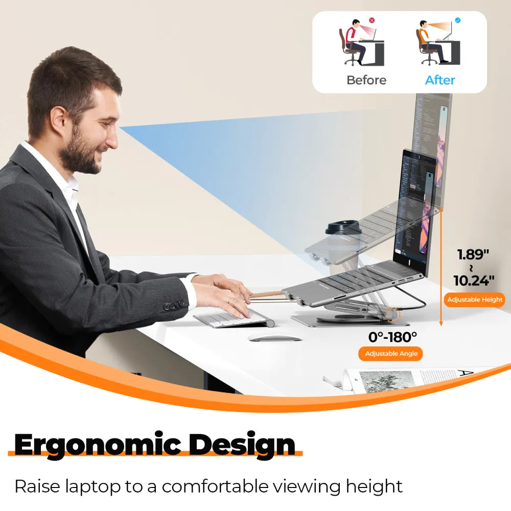 Height Adjustable & Ergonomic Design: Using this MacBook Pro docking station, you can incline at different angles and adjust the height to what is comfortable for viewing with ease. The ergonomic Z-type design is good for elevating your laptop to your eye level, saying goodbye to neck and back stiffness.