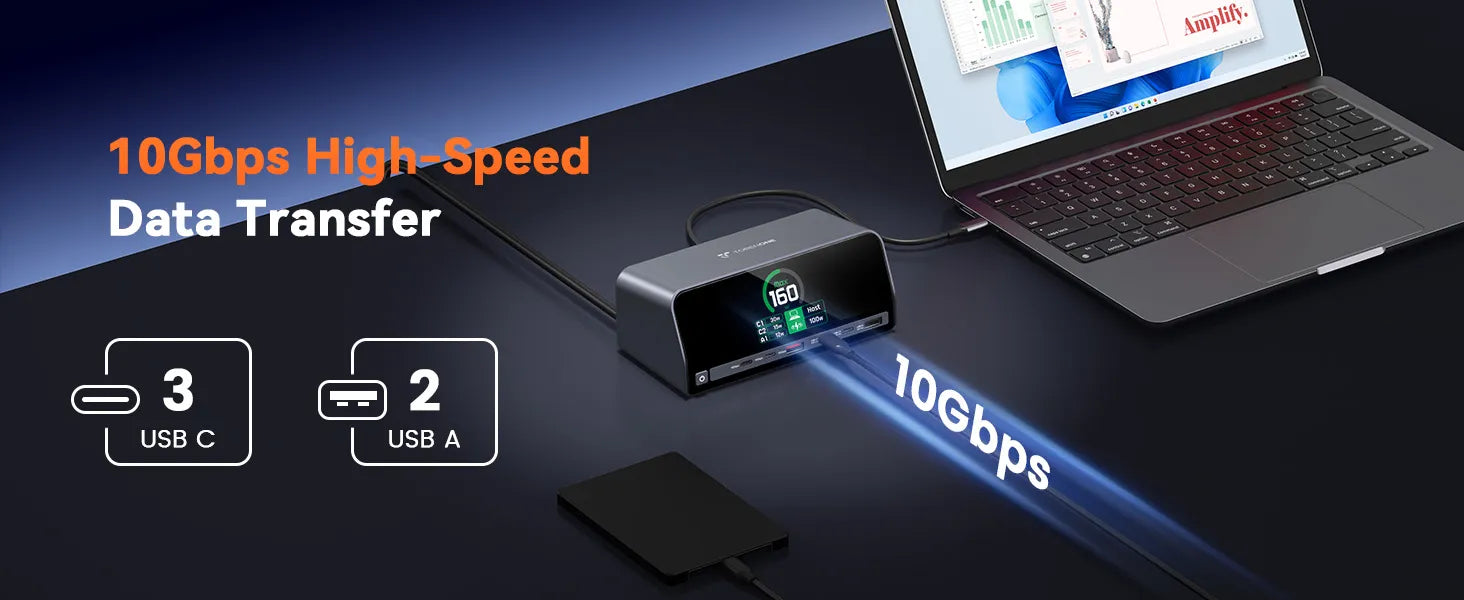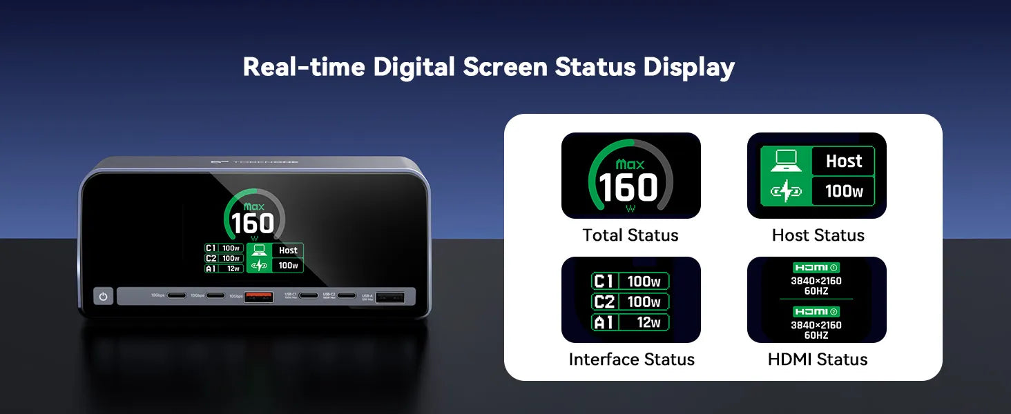 • Real-Time Monitoring & Space-Saving Design: Capable of real-time tracking of individual device charging status and total power consumption via an integrated display, this USB C charging dock used as a space-saving organizer for desks. Its compact, elegant build used to declutter workspaces while delivering pro-grade performance, ideal for minimalists, office workers, or home users who want a tidy setup