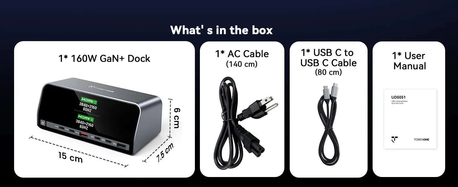 UDS051 TobenONE Docking Station 13-in-1 Laptop Docking Station Dual 4K Monitor with HDMI