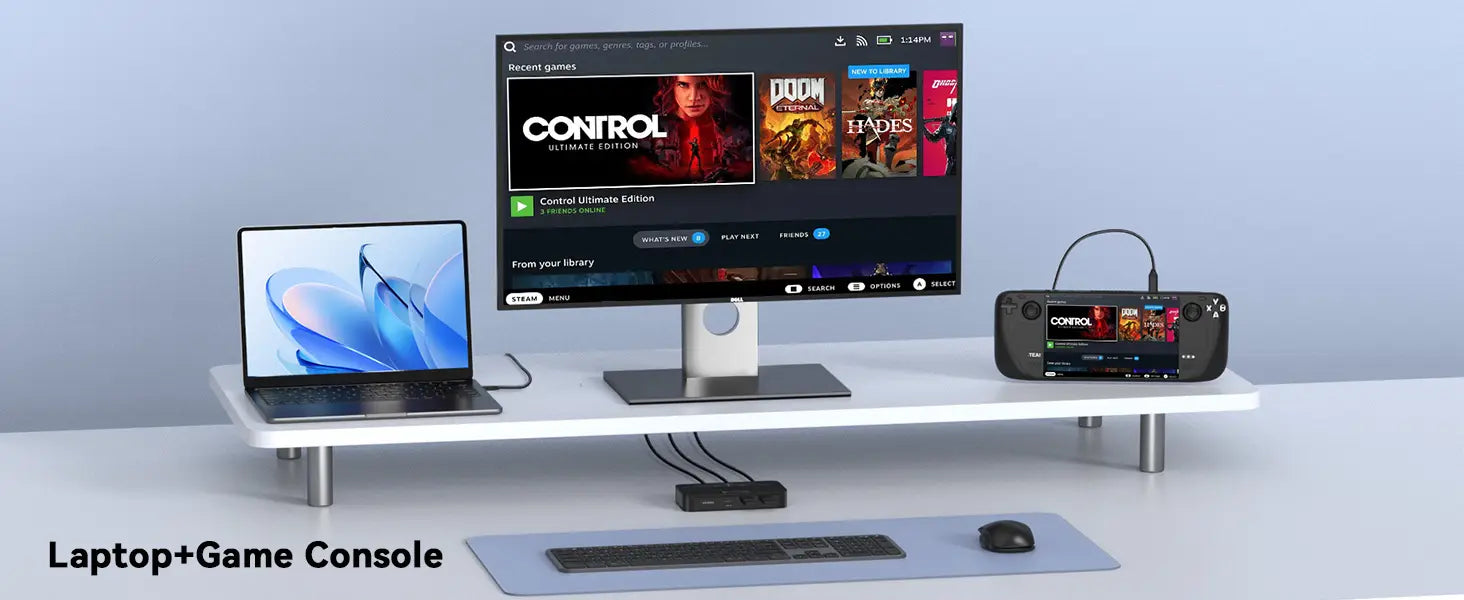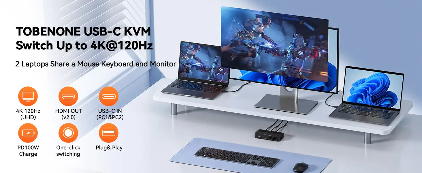 UDS053 USB C KVM Switch 1 Monitor 2 Computers 4K@120Hz HDMI