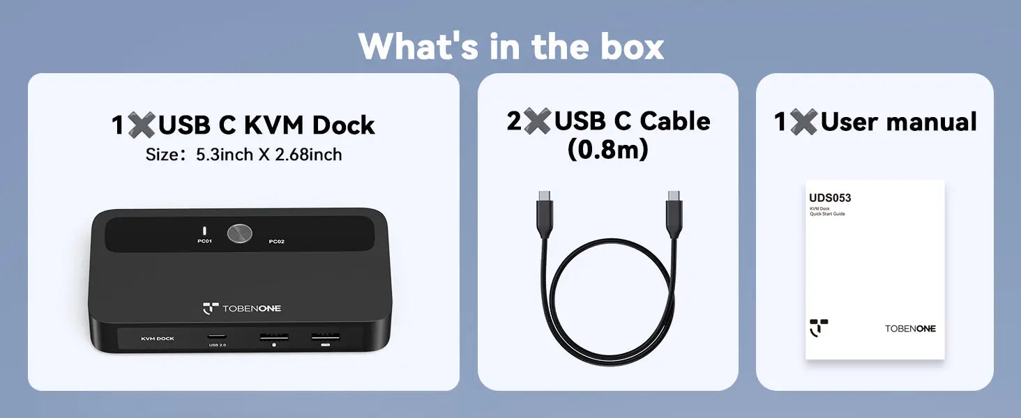 • Purchase Notice and Package List: This usb c switch is only applicable to laptops and cannot be used with desktop computers. The USB C port of the dock does not support display output. Packing includes 1*USB C KVM switch, 2*0.8M USB C Cable, 1*User Manual. If you receive the product and have any problems, please feel free to contact us.