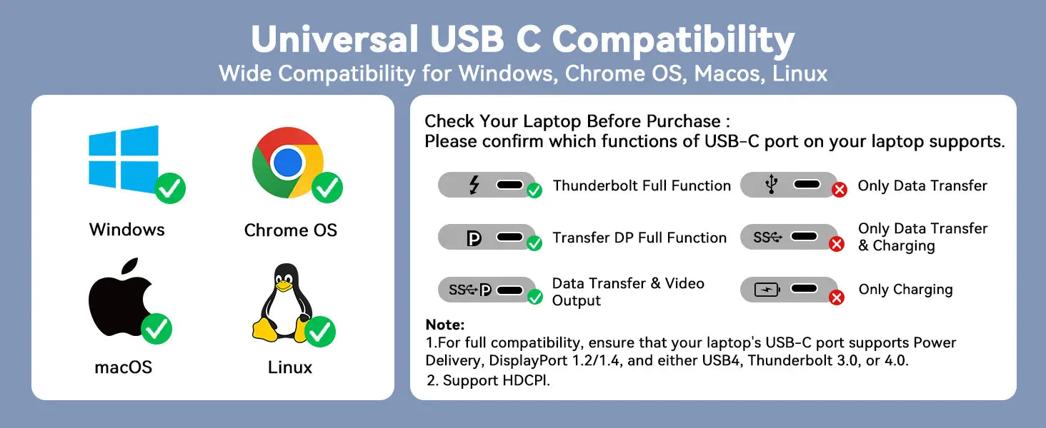 • Excellent Compatibility: This KVM switch is widely compatible with Windows 10/11, Chrome OS 100.x, MacOS, and Linux. Note: Your laptop port must have a fully functional USB C/USB 4/ or Thunderbolt 3/4. Also have multiple adaptation combinations, Laptop+Laptop, Laptop+Mobile/Tablet or Laptop+Handheld Console. Just plug and play, no drivers required. It is widely applied for Enterprise, Office, Multimedia Teaching, Gaming Rooms, etc.