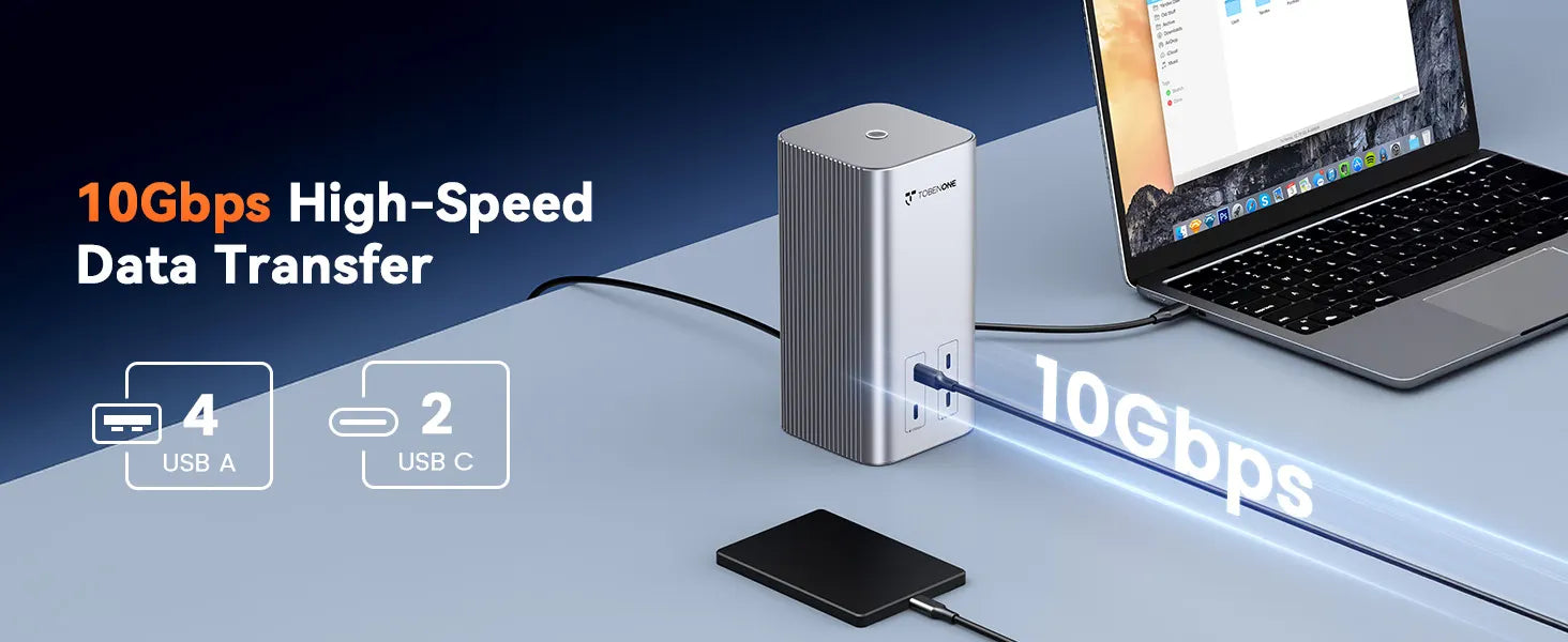• 10Gbps Ultra-Fast Data Transfer & Dual Card Reader: The USB C laptop docking station features 2*10Gbps USB-C ports and 2*5Gbps USB-A 3.2 ports for lag-free file transfers. Additionally, the USB 2.0 ports are available for connecting wireless mice and keyboards. The SD/micro SD card reader supports synchronous read/write operations up to 104MB/s, while the 1000Mbps Ethernet can maintain smooth, stable connectivity. Ideal for video editing and remote workers.